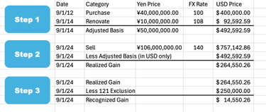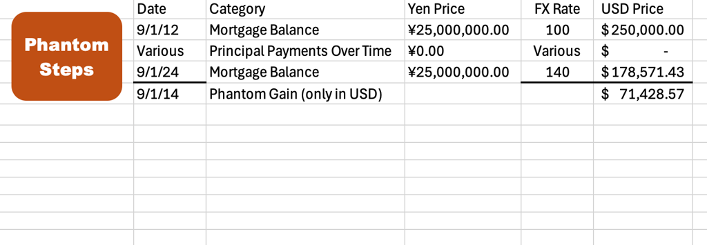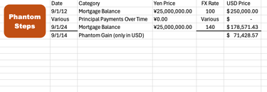 Our first calculation was for the regular capital gain tax; next is for phantom gain because the Yen declined by 40% while owner had this mortgage