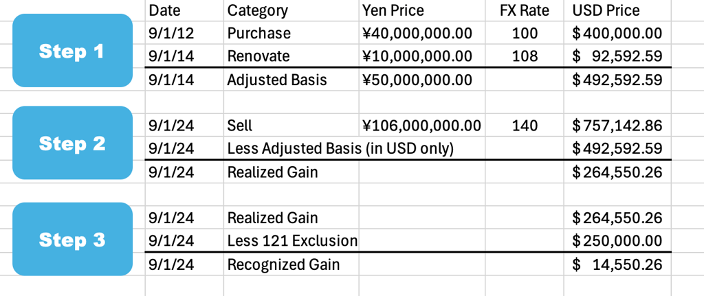 Owen had a realized capital gain ¥56M ($400K USD) --> Japanese capital gain tax ¥3.6M ($26K USD)